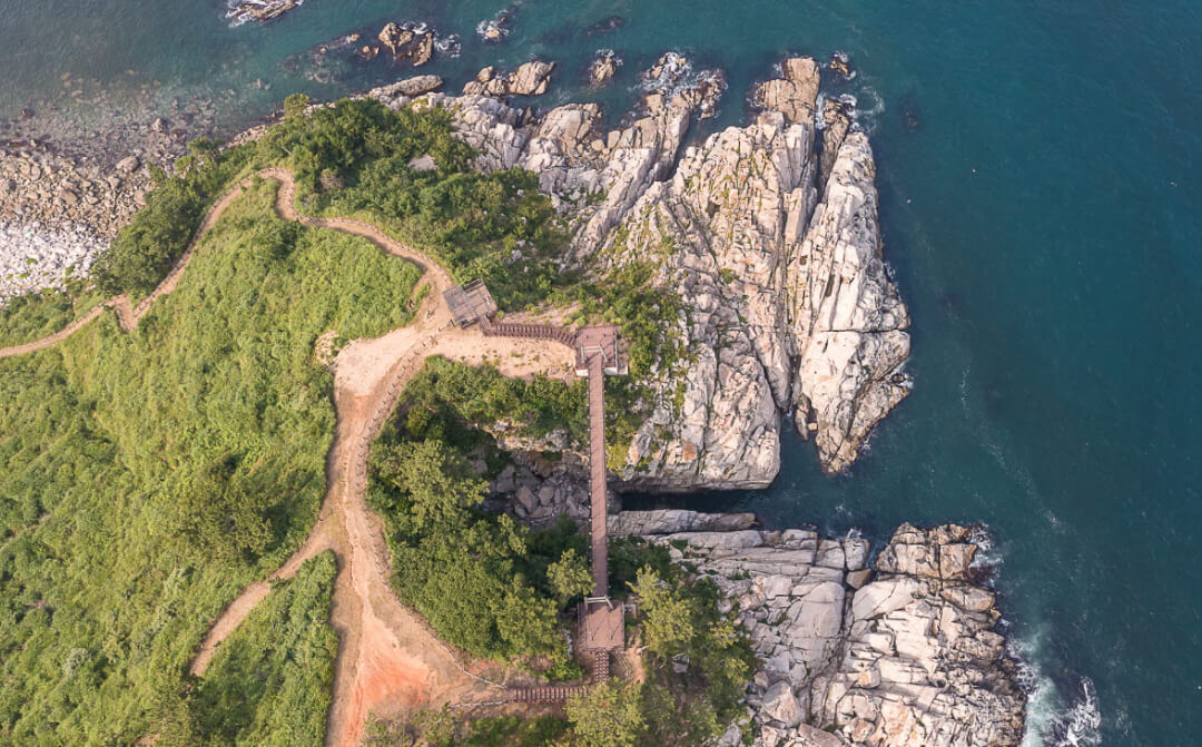 거제 이수도는 부산에서 접근성이 뛰어난 것이 장점이며, 섬의 앞쪽으로는 거제 본섬이 이어져 있고 부산 가덕도와 연결된 거가대교가 병풍처럼 펼쳐지는 곳입니다. 거제시 장목면 시방리에서 동쪽으로 600미터 해상에 위치한 이수도는 거제도에 위치해 있는 작은 섬입니다. 배를 타고 들어가야 하지만 배 타고 10분 정도면 도착하는 육지와 매우 가까운 섬이지요. 하늘에서 바라본 섬의 모양이 마치 학(새)이 나는 듯한 형상을 하고 있어 학섬, 새섬, 또는 물이 좋아서 이물섬이라고 불렸다고 합니다. 거제시 관광의 숨은 보고이자, 천혜의 자연경관을 자랑하는 이수도는 거가대교 전체와 근처 부산, 창원, 대마도까지 볼 수 있는 지리적 위치와 섬 주변의 청정해역, 풍부한 어족, 해상암초 항로표지, 동남쪽의 기암절벽 절경, 암석으로 된 해안에 해식애가 발달하여 아름다운 경치를 이루고 있는 섬입니다.