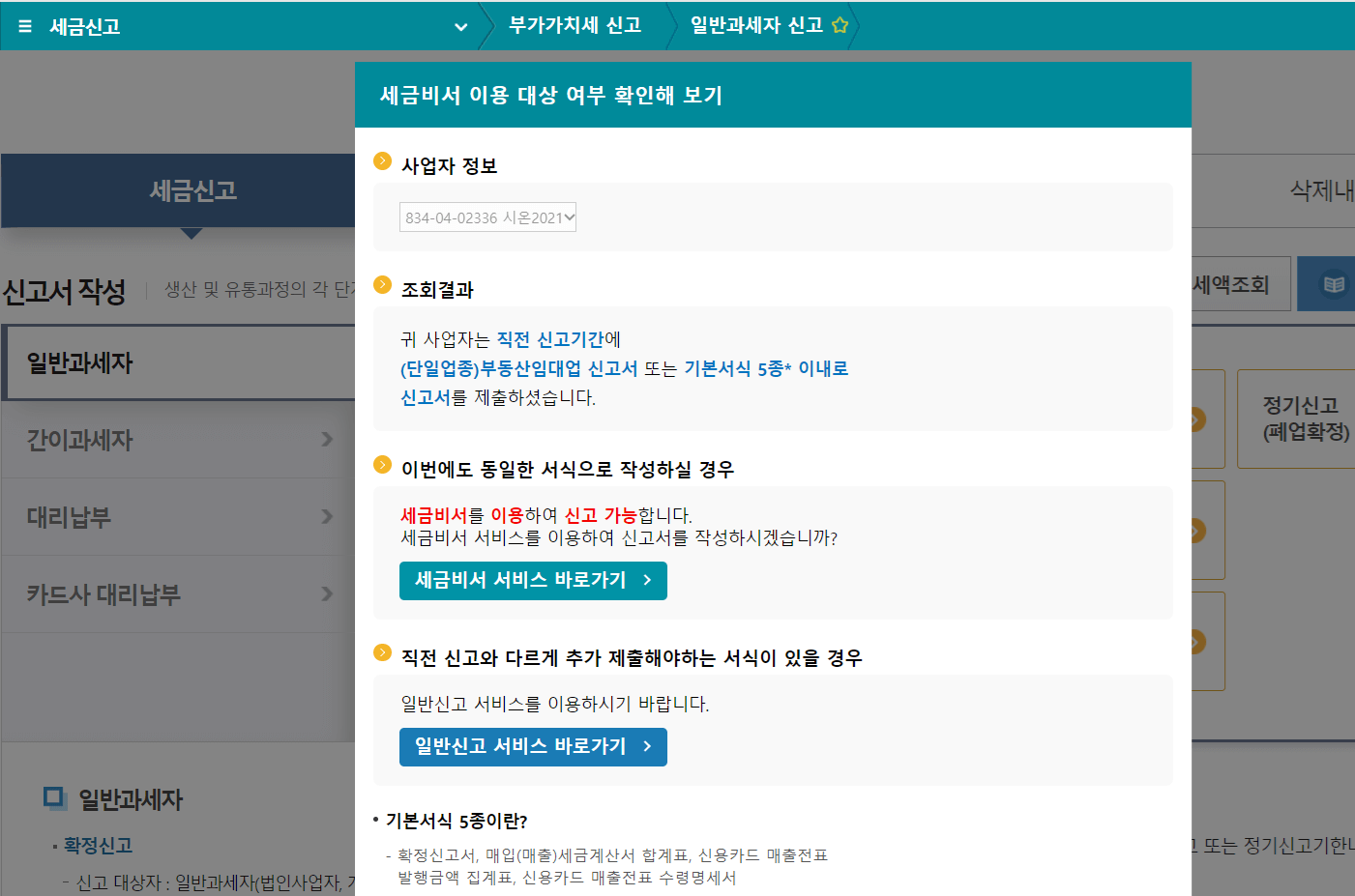 세금비서를 이용할까? 했다가 저번에 그렇게 안해도 간단했던거 같아서 이 팝업창 지우고 계속 진행합니다.