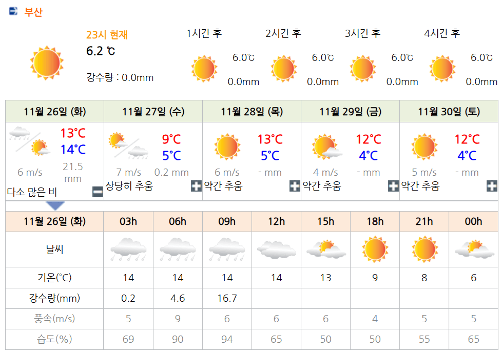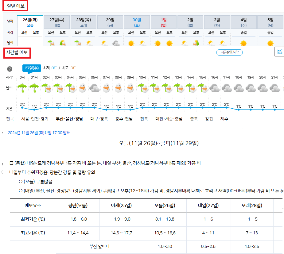 실시간 부산 울산 경남 지역별 주간날씨 바로가기