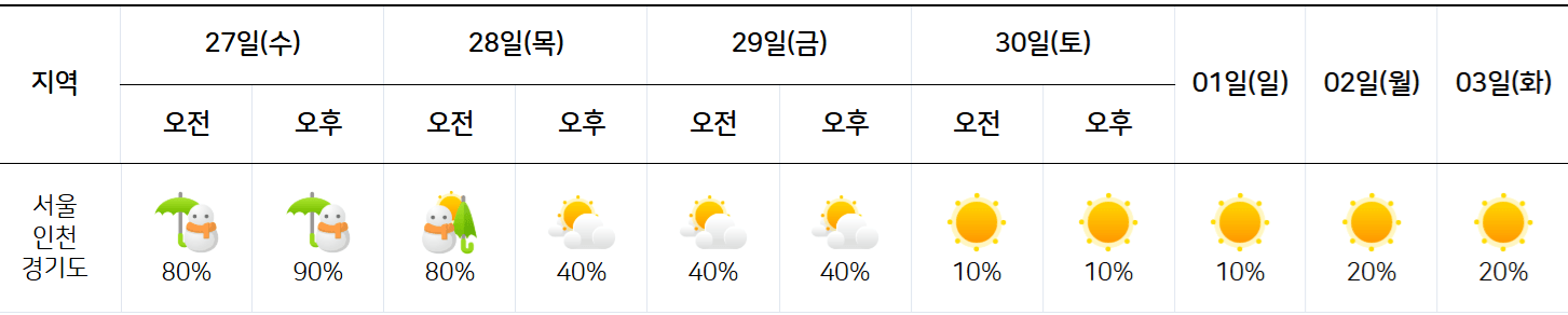 실시간 서울 인천 경기 지역별 주간날씨 바로가기