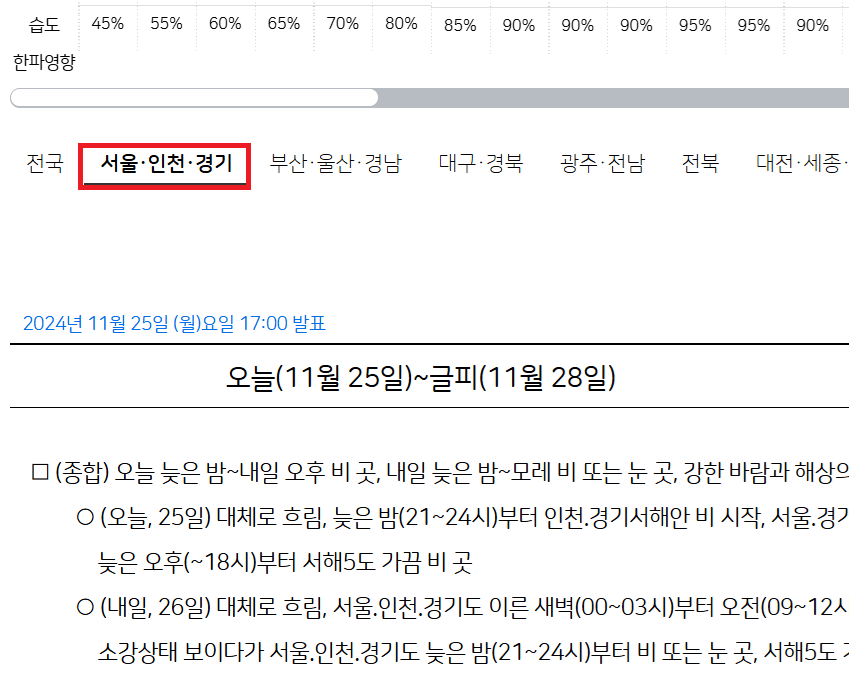 서울 인천 경기 단기날씨예보를