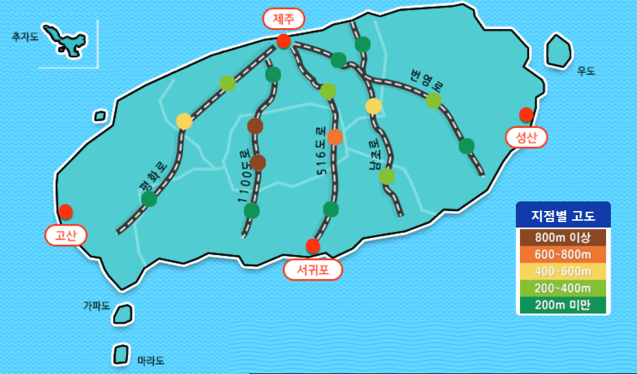 | 회수사거리 | 1100고지 | 어리목 | 한라수목원 |