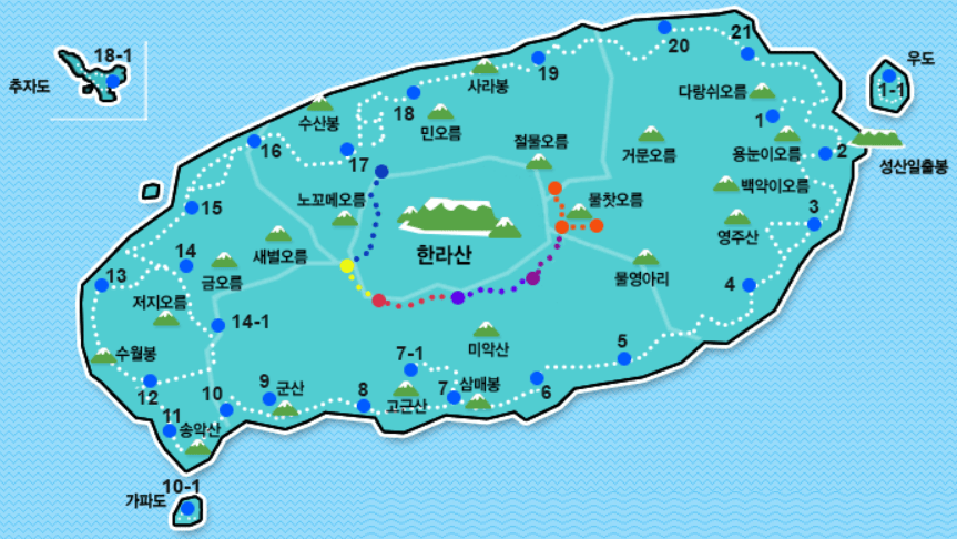 | 수월봉 | 수산봉 | 한라산 | 사라봉 | 삼매봉 |