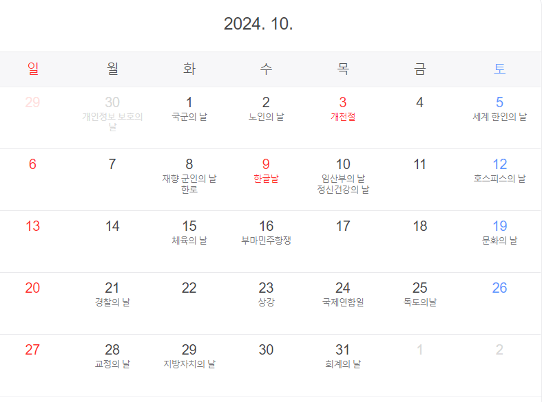 2024년 10월의 기념일