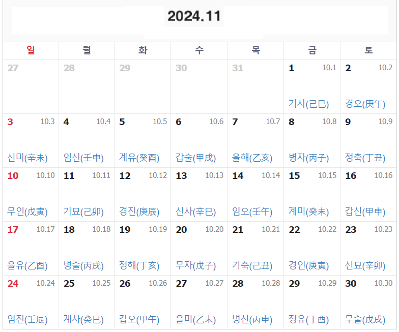2024년 11월의 음력 날짜