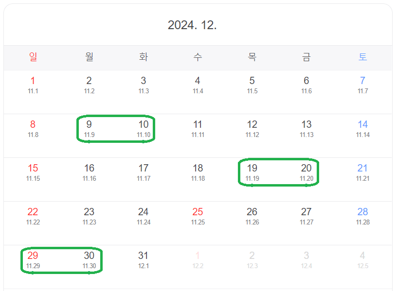 24년 11월 달력 정보 모아보기