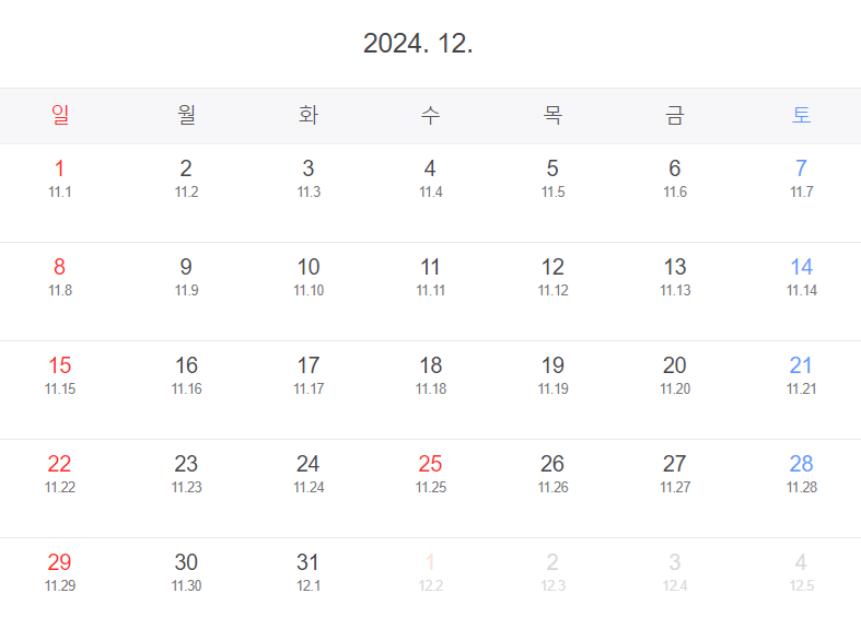 2024년 12월의 음력 날짜