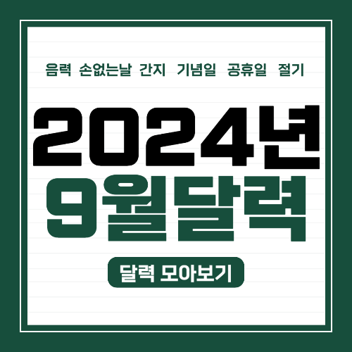 2024년 9월은 가을의 시작을 알리며, 명절과 절기가 중요한 시기입니다. 음력 날짜와 손 없는 날, 간지 등을 고려하여 계획을 세우면, 더 알찬 한 달을 보낼 수 있을 것입니다. 이러한 전통적 요소들은 우리의 일상에 여전히 깊이 자리 잡고 있으며, 이를 통해 더욱 풍요로운 삶을 영위할 수 있을 것입니다.