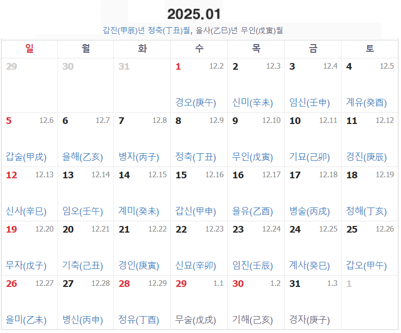 2025년 1월의 간지 조합인 갑진(甲辰)년 정축(丁丑)월은 다음과 같은 의미를 갖습니다